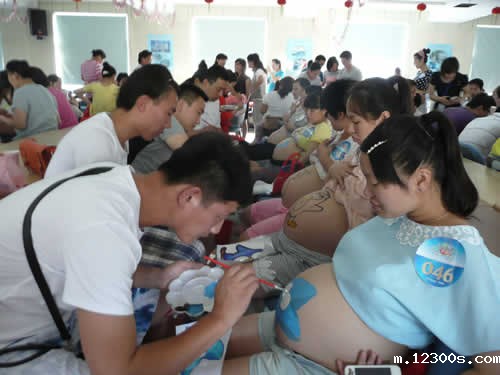 百名准妈妈在家人陪伴下参加了此次活动。在活动现场,孕妈咪露出骄傲的大肚皮做画布,准爸爸们临时扮演了特约画家的角色,亲手绘制一幅幅图案,彩绘的内容大多为卡通的动物和花卉 。